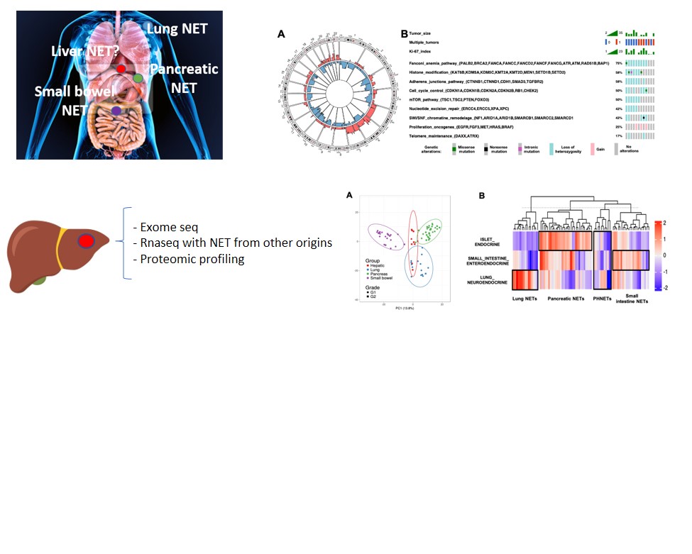Liver is the main site for NET (neuroendocrine tumors) metastasis. Isolated hepatic NETs are not uncommon and could correspond to primary hepatic NETs (PHNETs), a poorly explored entity. Using whole-exome sequencing and transriptomic profiles compared to pancreatic, small-bowel and lung NET, we showed that PHNETs display a foregut-like molecular profile distinct from other types of NETs, with recurrent molecular alterations, remaining a distinct entity with specific profile. Upon exhaustive work-up to exclude unrecognized primary tumor, PHNETs should thus not be considered metastatic NETs from an unknown primary.